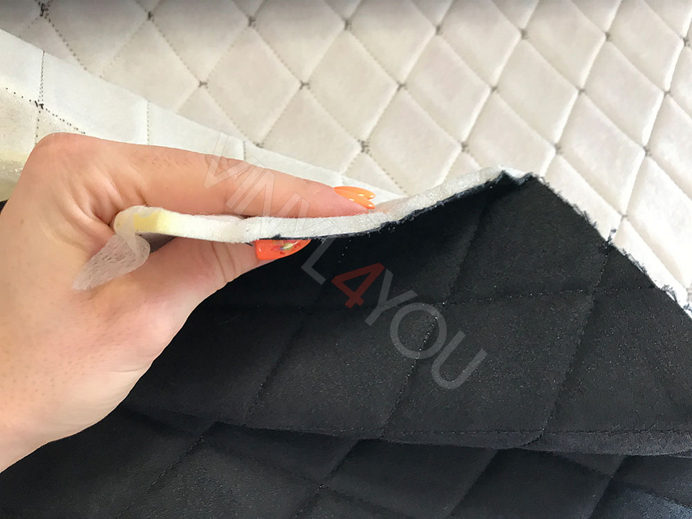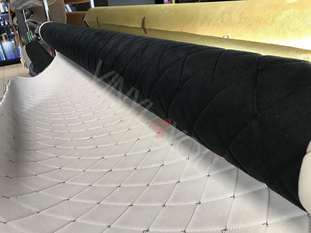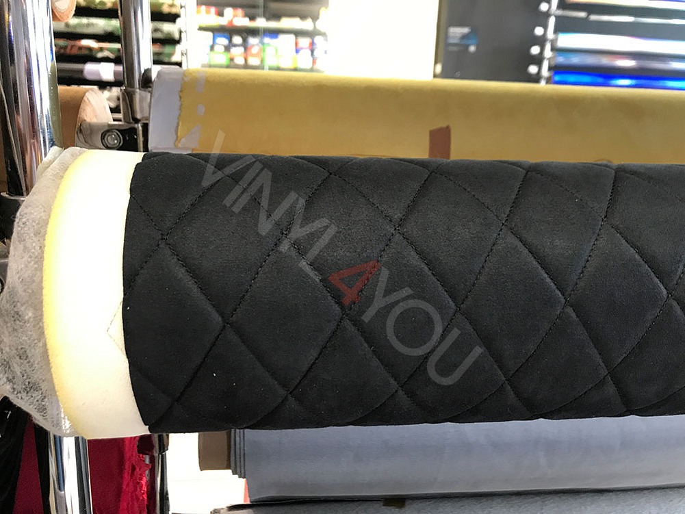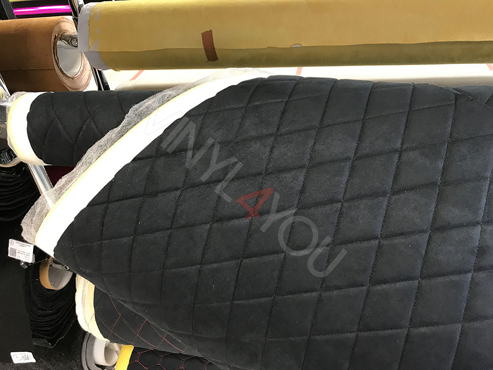 Алькантара стеганая черная Ромб с черной строчкой