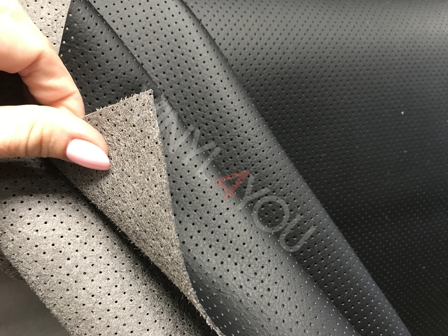 Экокожа на микрофибре без клея перфорированная Черная