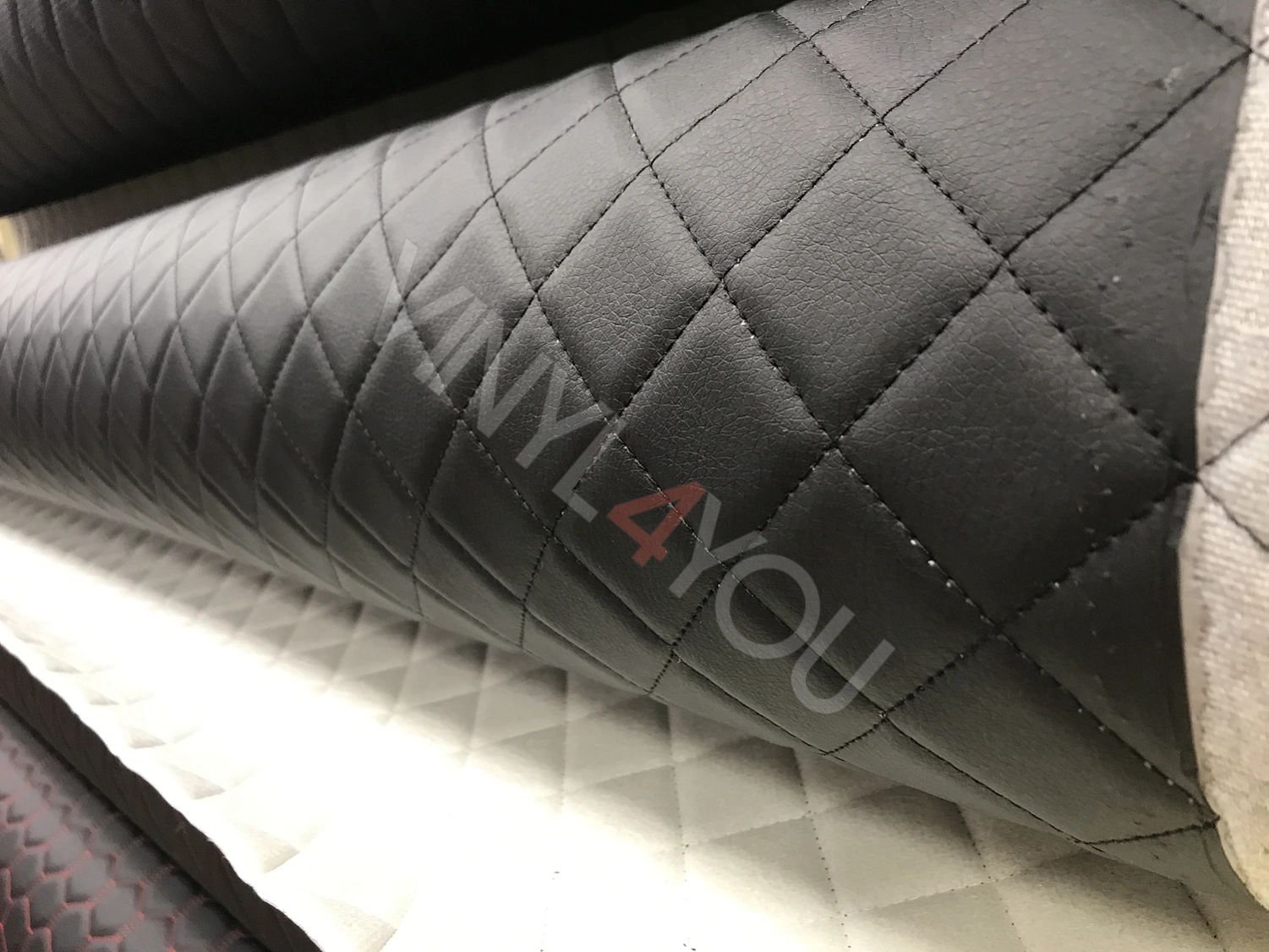 Экокожа стеганая Ромб Черная с Черной строчкой