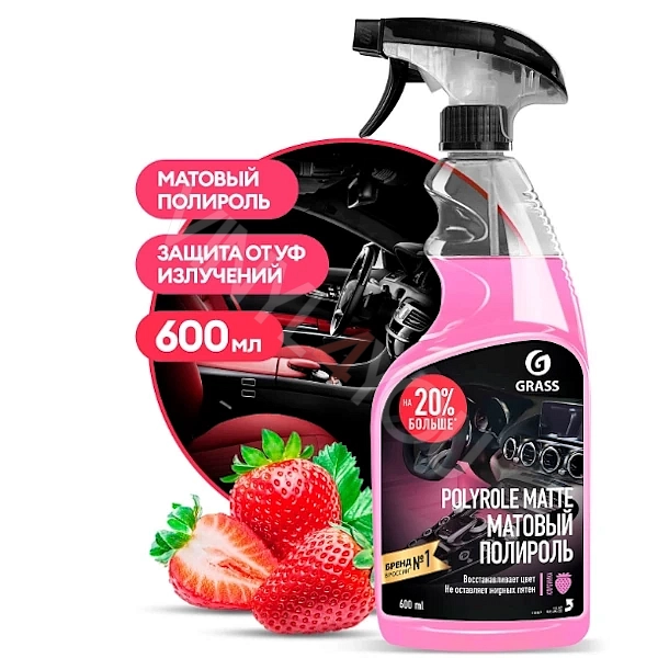 Полироль-очиститель пластика матовый "Polyrole Matte" клубника (флакон 600 мл)